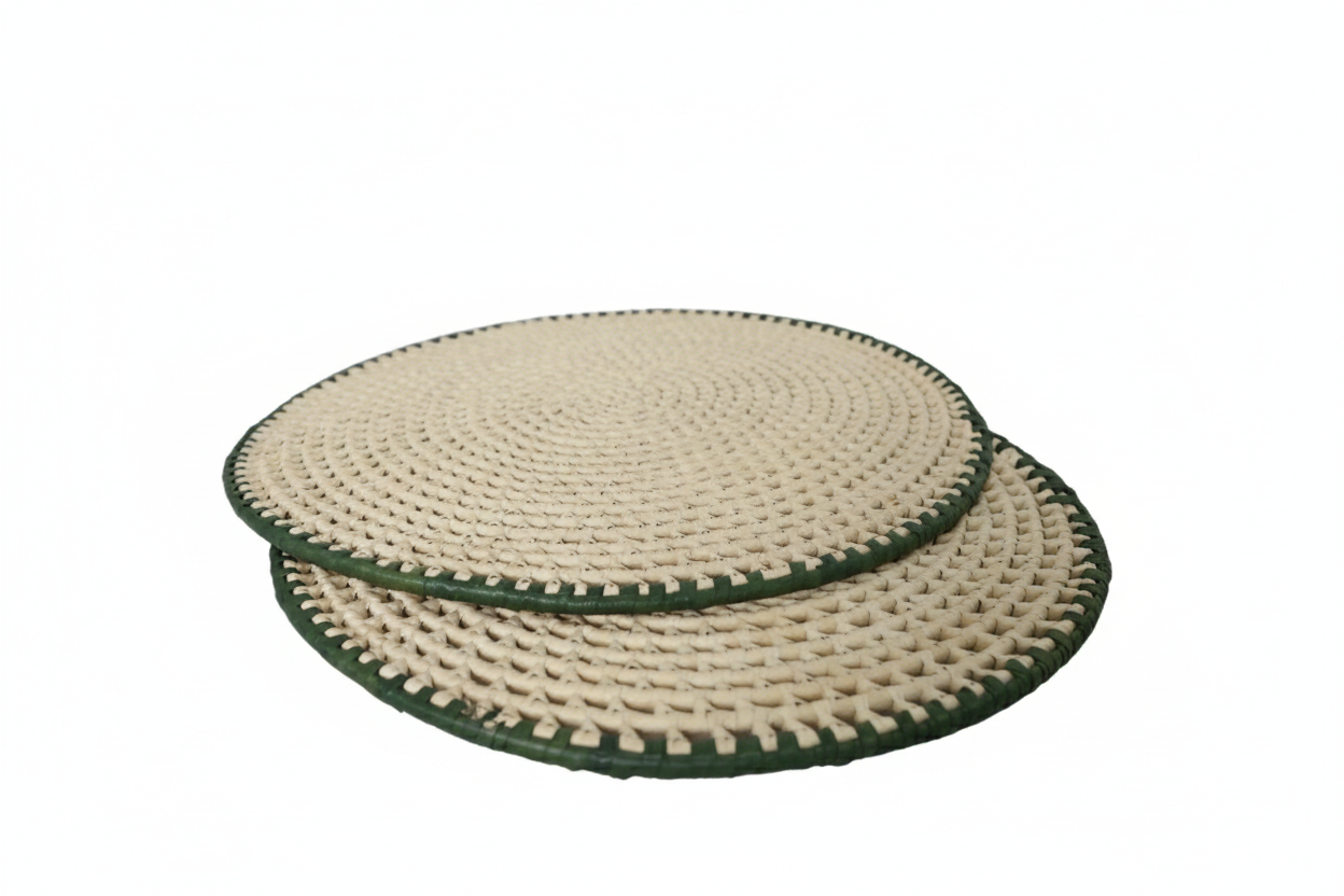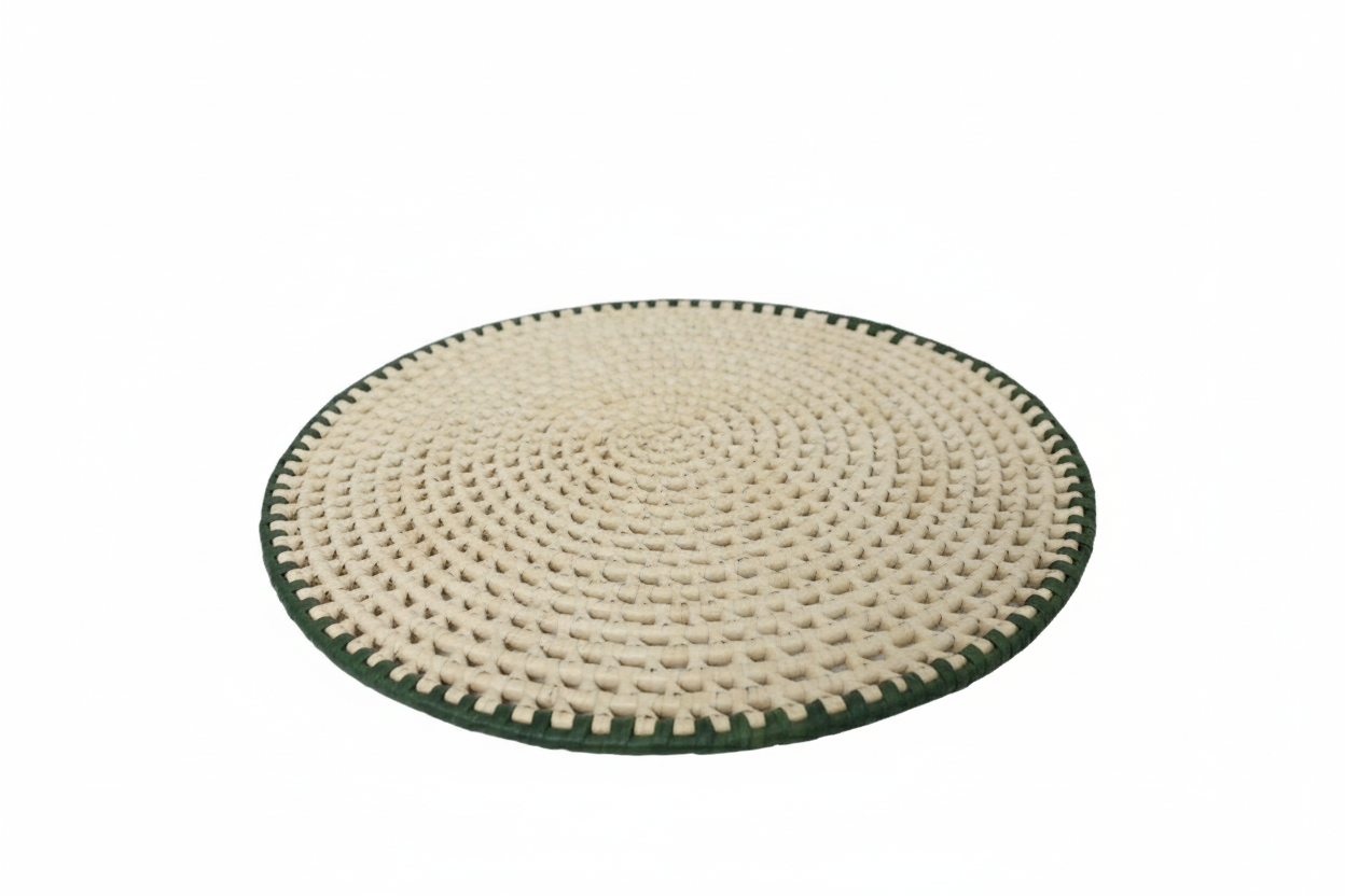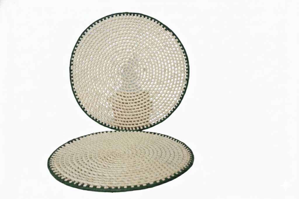 PALHA NATURAL COM DETALHE NA COR VERDE ESCURO. PONTO ABERTO TRANÇADO