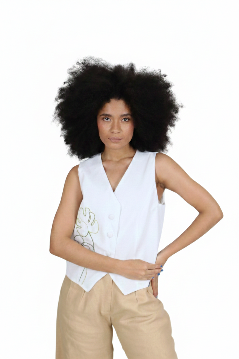 COR: BRANCO + DETALHES COLORIDOS COM BORDADO À MÃO