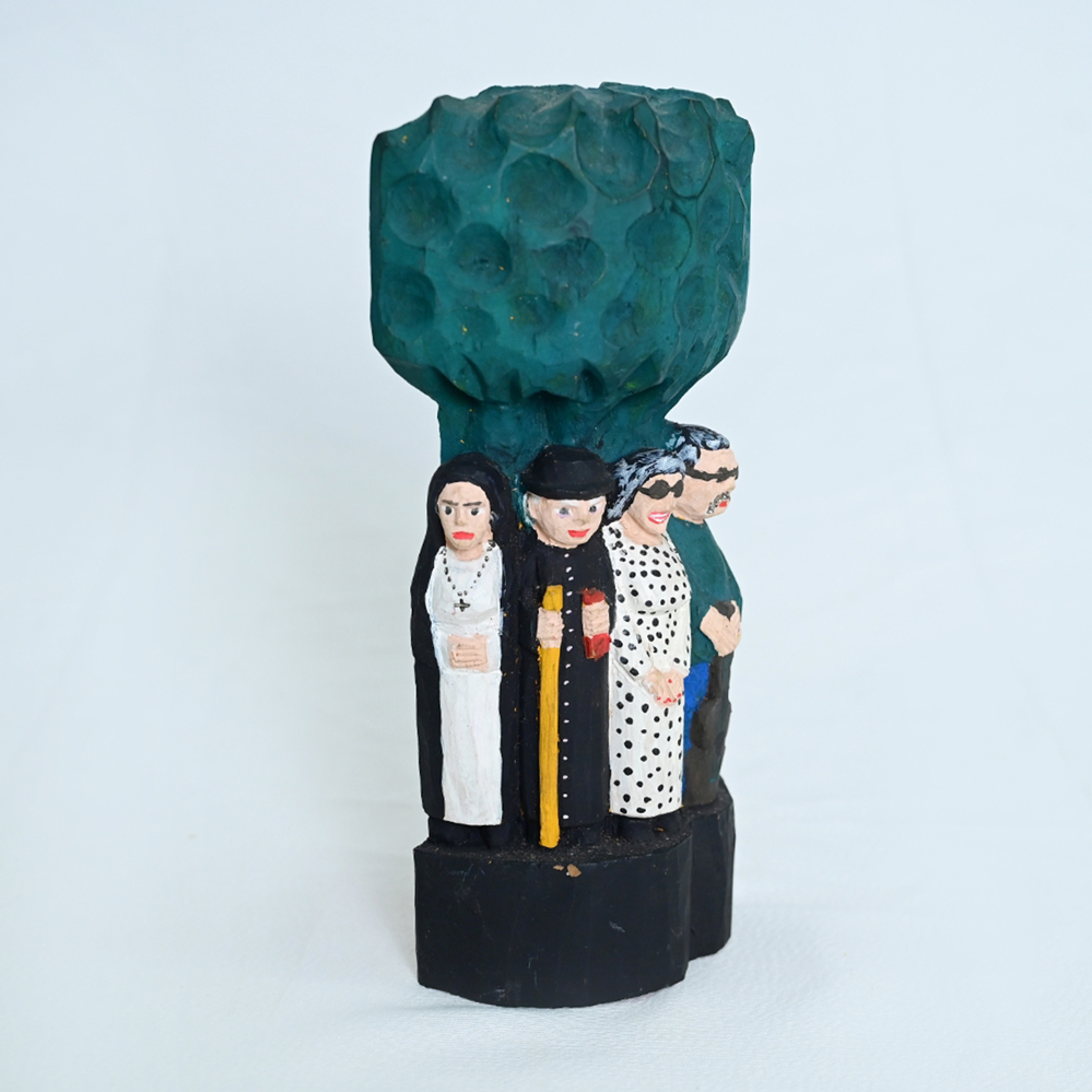 A peça é um belo exemplar do artesanato nordestino, que imortaliza figuras e símbolos da identidade regional em madeira.
