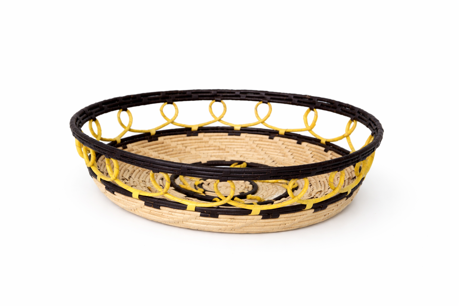 FRUTEIRA – PALHA CARNAUBA – 0,33 M DIAM X 0,11 M ALT – AMARELO/NATURAL/PRETO