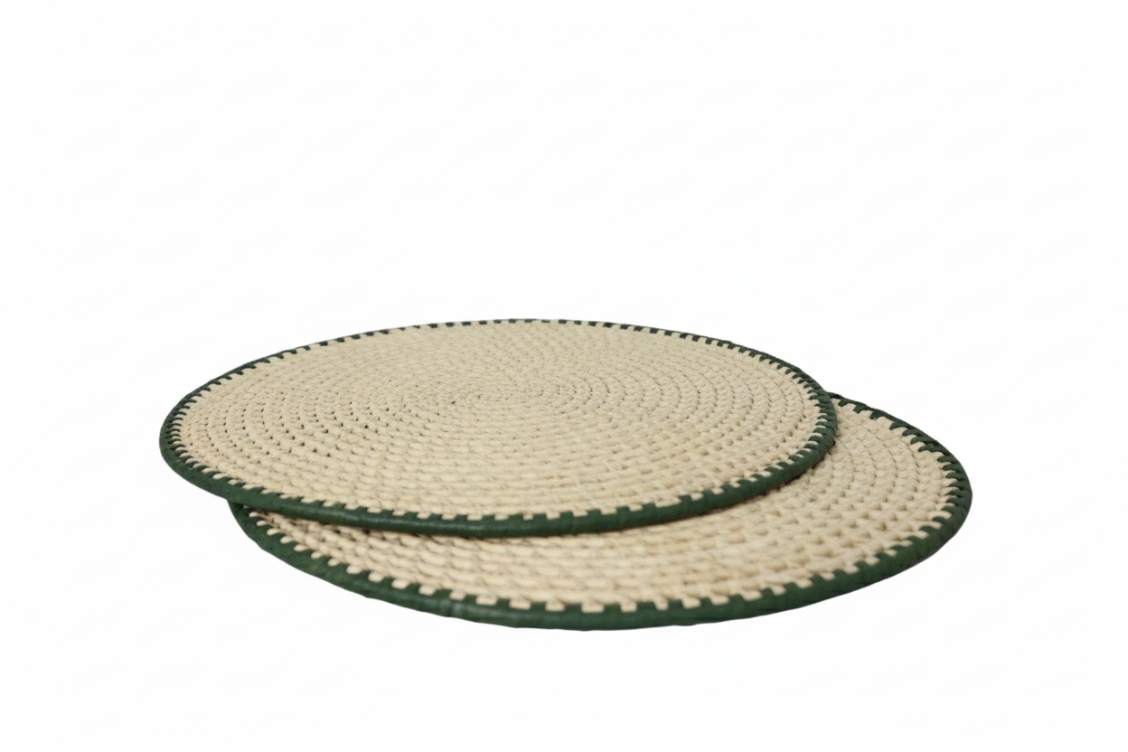 PALHA NATURAL COM DETALHE NA COR VERDE ESCURO. PONTO ABERTO TRANÇADO