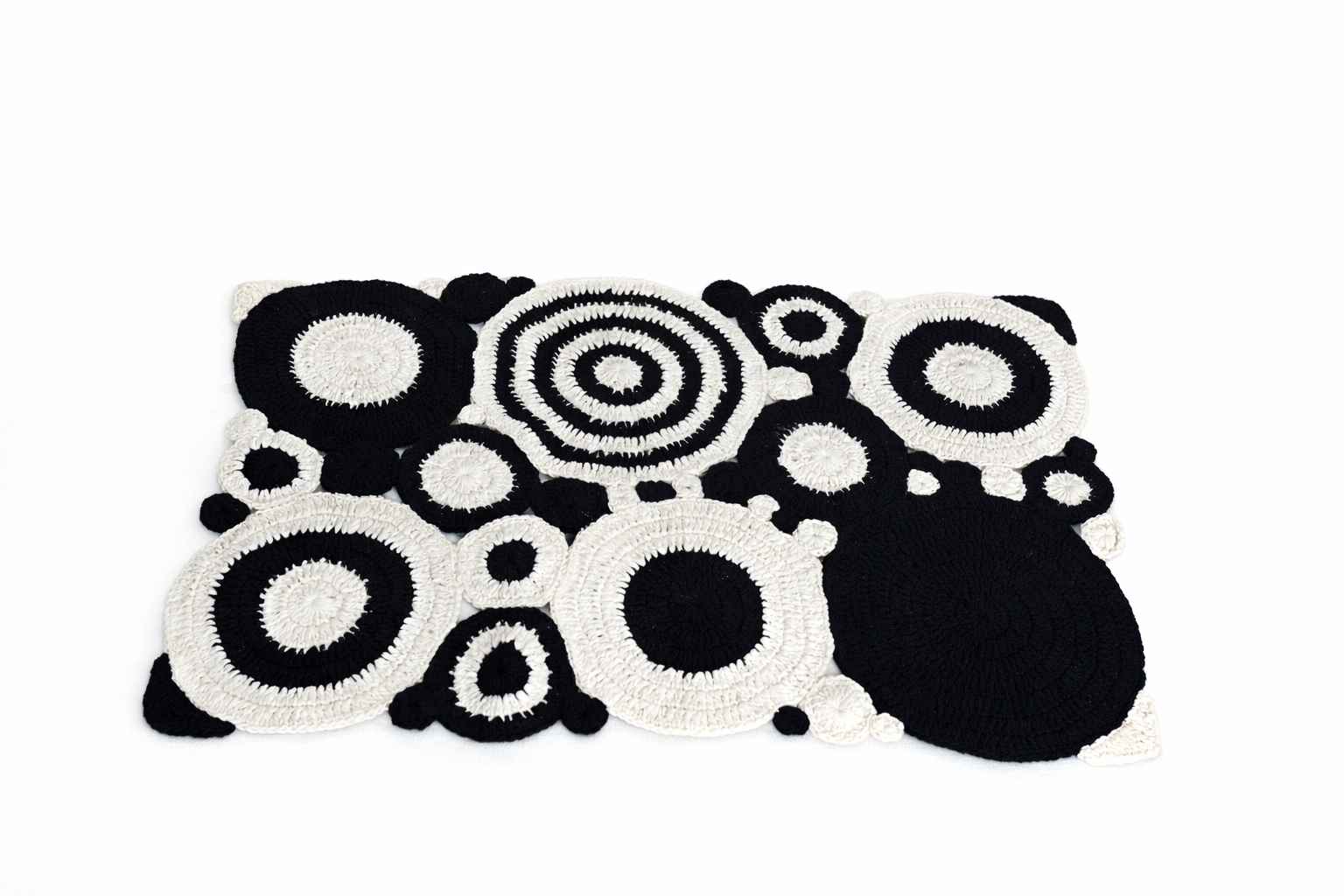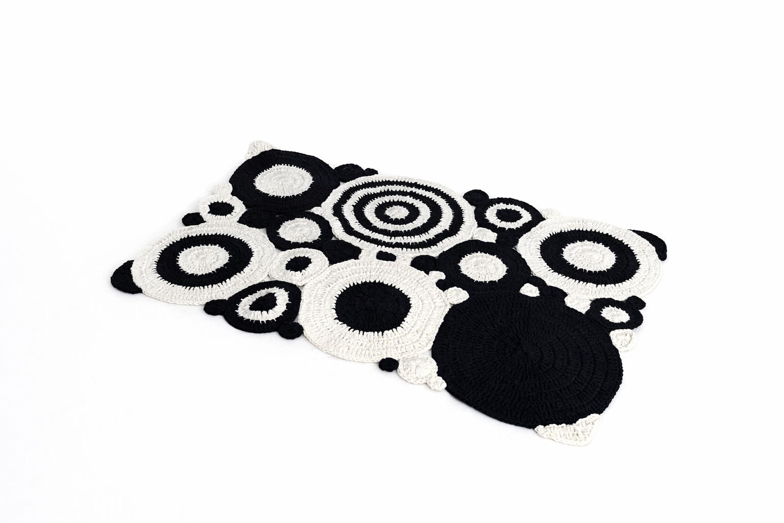 NA COR BRANCO COM PRETO. CONTÉM DESENHO GEOMÉTRICO.